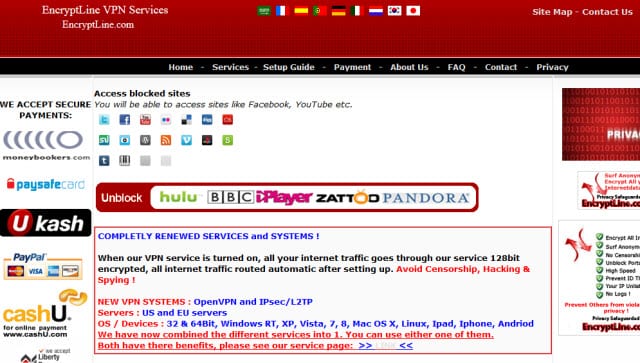 加速器 On Demand 支持 PPTP 和 L2TP 协议。EncryptLine 是个人 加速器 提供商,可从其位于美国和欧洲的服务器提供安全连接。